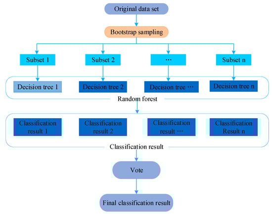 Random forest is a supervisory machine study algorithm. It extracts multiple subsets from the original data, trains each subset, and summarizes the classification results of different subsets to get the final result (Figure 2). In addition, random forest has an important feature which can calculate the importance of individual feature variables. Therefore, this study calculated the importance of each feature’s influence on PM2.5 concentration, sorted these features, and screened out the most important feature.