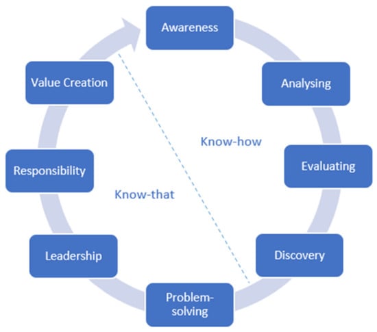 Creativity and risk-taking lead to entrepreneurial competencies, opportunity recognition, evaluation and decision-making. Entrepreneurial competencies develop through enquiring, critical thinking and inspiring leadership, which enable learners to develop a positive attitude towards value creation [3]. Entrepreneurs are required to adjust to emerging knowledge and changes in the global market, society, technology and complex world. The foundation of EE should be based on “a specific set of values (beliefs) and needs which provide the individual with the intrinsic motivation and self-determination to engage in entrepreneurial behavior” [97], p. 292 and the new economy (related to social, digital and environmental problem solving).