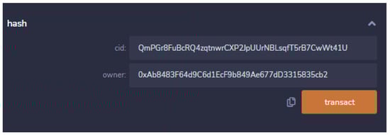 After deployment, we can see a view of the different functions of the smart contract, as shown in Figure 10. Functions are shown with two different colors. Functions with orange color are those which will add or modify the state of the data. Functions with blue colour are only view functions. These functions do not change any data.
