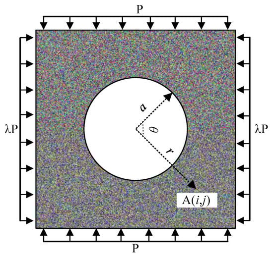 where , , and are the radial stress, circumferential stress, and shear stress at any point in the surrounding rock, (MPa); r, θ is the polar coordinate of any point; a is the radius of the roadway, (m); P is the minimum confining pressure, (MPa); λ is the ratio of the maximum confining pressure to the minimum confining pressure, which is called the lateral pressure coefficient.