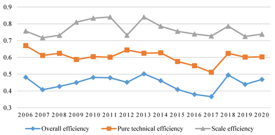 44]. Each province has a high pure technical efficiency, but significant regional differences in comprehensive technical efficiency and scale efficiency are apparent [