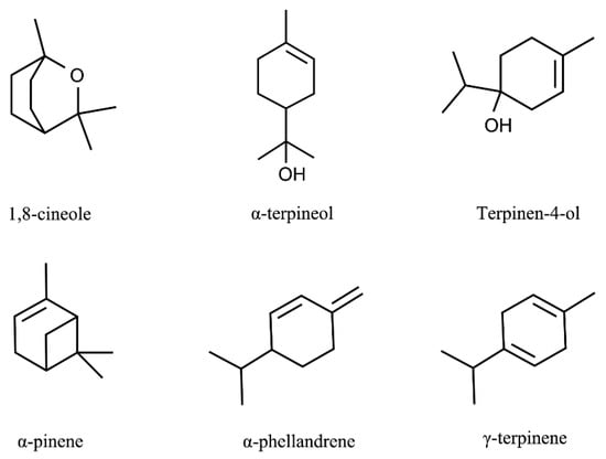 - Huang, J.; Yang, L.; Zou, Y.; Luo, S.; Wang, X.; Liang, Y.; Du, Y.; Feng, R.; Wei, Q. Antibacterial activity and mechanism of three isomeric terpineols of Cinnamomum longepaniculatum leaf oil. Folia Microbiol. 2021, 66, 59–67. [Google Scholar] [CrossRef]