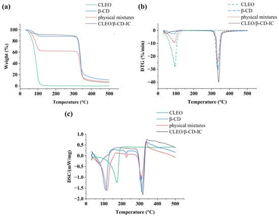 - Marques, C.S.; Carvalho, S.G.; Bertoli, L.D.; Villanova, J.C.O.; Pinheiro, P.F.; Dos Santos, D.C.M.; Yoshida, M.I.; de Freitas, J.C.C.; Cipriano, D.F.; Bernardes, P.C. β-Cyclodextrin inclusion complexes with essential oils: Obtention, characterization, antimicrobial activity and potential application for food preservative sachets. Food Res. Int. 2019, 119, 499–509. [Google Scholar] [CrossRef] [PubMed]