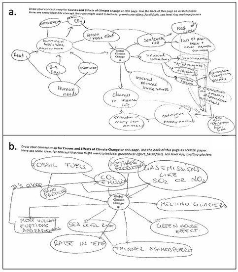 - Ratinen, I.; Viiri, J.; Lehesvuori, S. Primary school student teachers’ understanding of climate change: Comparing the results given by concept maps and communication analysis. Res. Sci. Educ. 2013, 43, 1801–1823. [Google Scholar] [CrossRef]