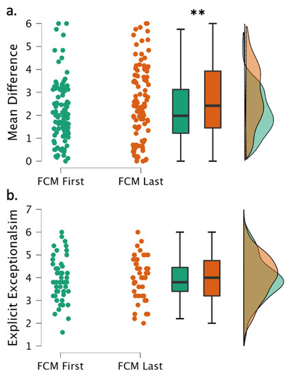 Human exceptionalist thinking about global climate change may lead to correct inferences in some cases, and incorrect inferences in others. On one hand, human exceptionalist thinking may align with beliefs that are consistent with scientific evidence, such as believing that modern, global climate change is uniquely driven by human behavior [58]. On the other hand, exceptionalist thinking may also align with beliefs that are inconsistent with scientific evidence, such as the misconception that humans will be unaffected by climate change compared to other species, perhaps because of our intellect or technologies. In line with such exceptionalist thinking about the effects of climate change on humans, adults rarely spontaneously discuss human-relevant effects of climate change [59,60,61]; see also [34], Study 2. Thus, human exceptionalism could shape people’s understanding of climate change in complex ways.