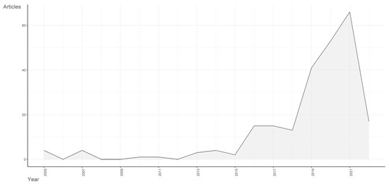 Figure 2 shows the research trends. A significant increase in the interest of researchers in the field of influence of electric and autonomous vehicles occurred during 2018, when significant growth was recorded. Growth continued during 2021, while data for 2022 are not yet available.