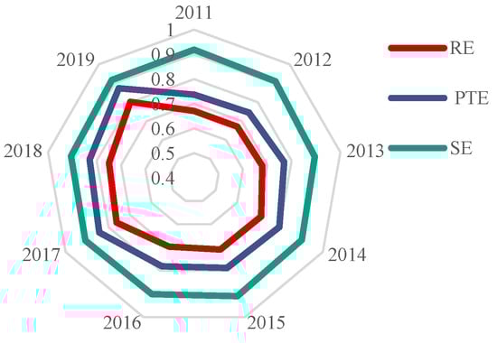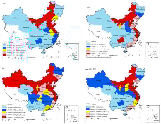 - The use of DEA models has matured in the measurement and evaluation of the LI’s efficiency, but there are various forms of DEA models. Traditional CCR and BBC models are not suitable for dealing with non-desired outputs, and the super-efficiency-SBM-non-desired output model still has some shortcomings [29]. It cannot deal with both radial and non-radial cases, and the measurement results are low and do not correspond to the actual situation. Furthermore, one of the important aspects of the evaluation is characterizing spatial evolution, and there is still a scarcity of LIRE spatial evolution research. As a result, more realistic models and methods for measuring and evaluating RE must be used to effectively analyze and optimize it.