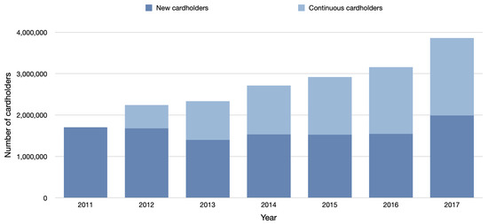 Figure 2. Composition of the number of cardholders from 2011 to 2017.
