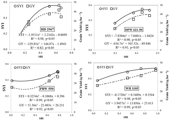 SBI was also validated against wheat SYI after 3 years of cropping cycles through multiple regression and Pearson’s correlation coefficient-based statistical tools.