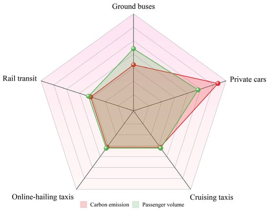 In terms of total carbon emission, the carbon emission of Shanghai urban passenger transport in 2019 was about 12.9 million t [66]. Because Shanghai is a first-tier central city and public transport development is more developed, this result is comparable to other studies.