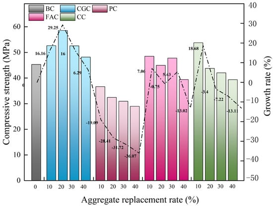 - With the increase in coal gangue ceramsite, the mechanical properties of CGC first increased and then decreased. With the increase in fly ash ceramsite, the mechanical properties of FAC increased, decreased, increased again and finally decreased. With the increase in coral aggregate content, the CC increased then decreased. With the increase in pumice aggregate, the PC decreased. The comprehensive performance was CGC > FAC > CC > PC.