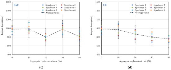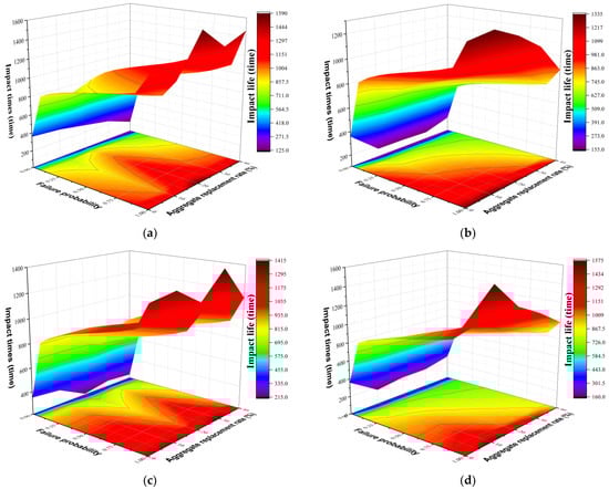 - The impact resistance of MLAC under multiple factors was analyzed in depth. The analysis showed that the influence of the aggregate replacement rate on the impact resistance of multi-phase lightweight aggregate concrete was higher than the probability of failure or the failure of the concrete specimens.