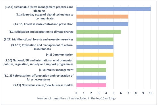 Most selected skills for the forestry FG. In brackets are the skill numbers from Appendix A tables.