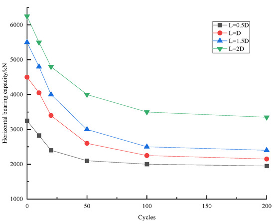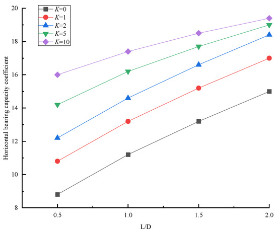 Horizontal bearing capacity coefficient with different L/D.