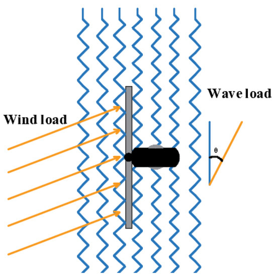 According to Byrne, B.W., and Houlsby, G.T. [31], the wind and wave load directions are not the same and there is a certain angle between them. According to Seidel [32], the massive horizontal cyclic load induced by wind, wave, and flow does not have a fixed direction, and the included angle of wave load during the service of the offshore fan may exceed 90°. As a result, the wind and wave loads exerted on the offshore fan are not in a single direction, and there is a specific angle θ between them (Figure 9).