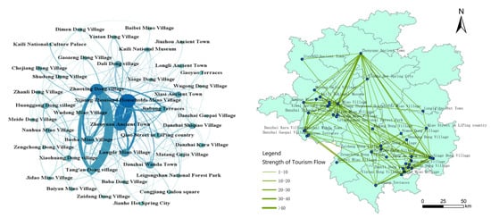 Fourth, the analysis of the tourism flow network structure reveals that the tourism flow network structure of Qiandongnan Prefecture is low in closeness and has a strong imbalance. The connections between tourist attractions are relatively sparse. In a previous study, Mou et al. [] found that the regional development of tourism in Qingdao is unbalanced, and tourists are mostly concentrated in the east coast area. The findings are similar to the results of this study. Therefore, establishing how to deal with the unbalanced development of different tourist attractions correctly is particularly important for the future development of tourism.