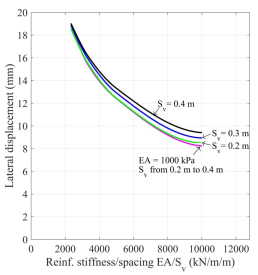 4.1. Influence of Reinforcement Stiffness and Spacing on Lateral Displacement