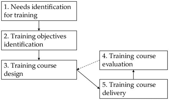 In order to standardize the training course properly and disseminate and utilize the project results, the following steps were proposed, as shown in Figure 1: (i) needs identification for training; (ii) training objectives identification, (iii) training course design, (iv) training course delivery, and (v) training course evaluation.