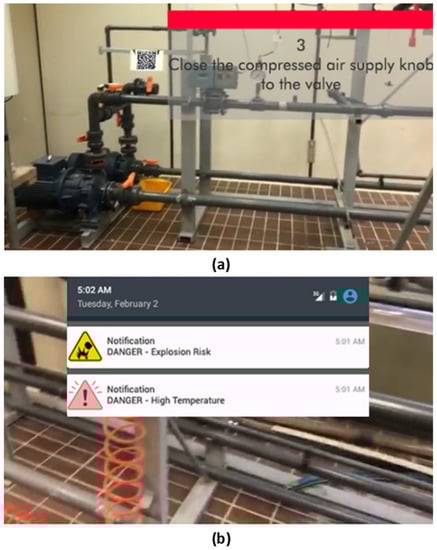 Examples of smart glasses function: (a) markers; (b) emergency notifications.