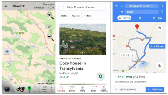 This study’s findings on the rural Geosystem’s future in the smartphone world revealed that the inception of Romanian tourist sites was and is possible with the help of new technologies such as smartphone applications including Airbnb, Booking, Facebook and WhatsApp, which are regularly used for information and communication purposes, or Google Maps, Sygic and Waze, for orientation/directions, because of their free availability and convenience [
