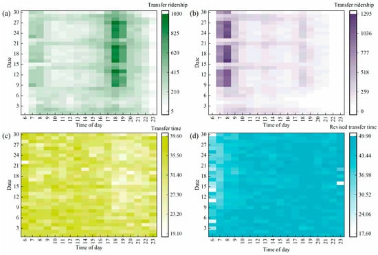To show more clearly the distribution of different transfer-related variables on different dates, we added heat maps of transfer ridership and transfer time, as shown in Figure 5 below: