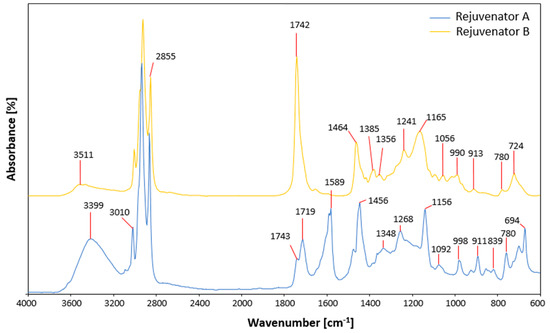 FTIR spectra of the two rejuvenators.