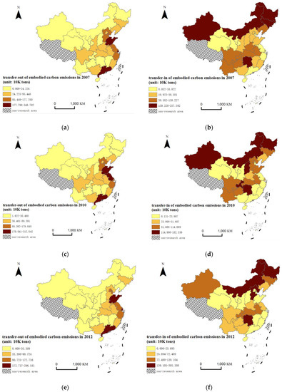 | Embodied Carbon Emissions in Trade Transfer out | Embodied Carbon Emissions in Trade Transfer in | Embodied Carbon Emissions in Trade Transfer out | Embodied Carbon Emissions in Trade Transfer in | Embodied Carbon Emissions in Trade Transfer out | Embodied Carbon Emissions in Trade Transfer in | |