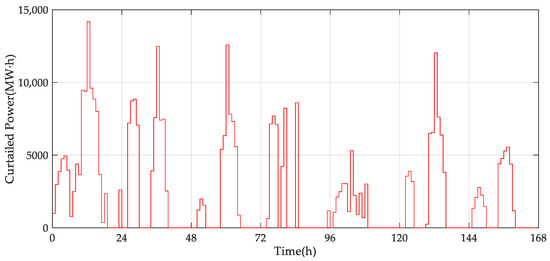 The data of power curtailment in the case is selected from the actual power grid in an area. The data of power curtailment in a typical week is selected, one hour is a sampling point, and there are 168 sampling points in 7 days. The data of power curtailment is shown in Figure 2.
