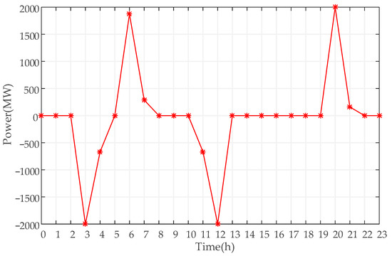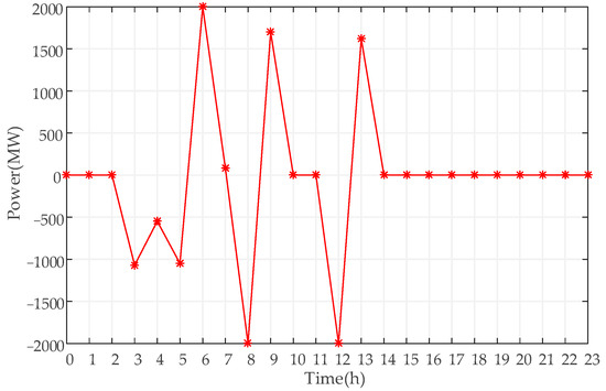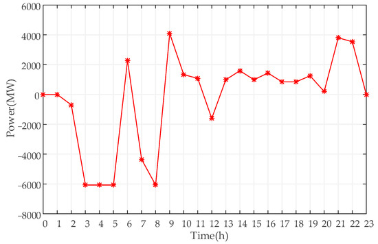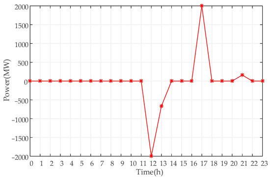 The first representative scenario is the simulation result of the second day, and the operation curve of PSH is shown in Figure 5. Among them, the output is negative when pumping water, and positive when generating electricity.