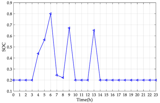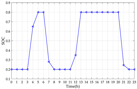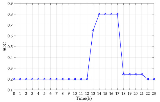 In this case, the change in the SOC of EES is shown in Figure 7.
