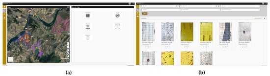 Web portal screens: (a) the geographic representation of elements relevant to the management of open-field grape production; and (b) trap images collected via the mobile application.