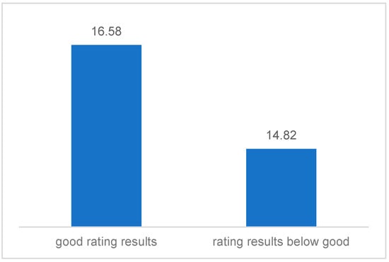 Numerous academic papers have derived a positive relationship between good CSR performance and corporate reputation [8,9,67,68,69]). Based on these studies, we therefore compare the reputation of DAX40 companies concerning their ESG rating results and their reporting of these results. We use the reputation score from YouGov’s BrandIndex to measure the corporate reputation of non-professional stakeholders. Our results show that Group A, predominantly ‘good’ rated companies (with at least an ‘A’ or a ‘low risk’ rating from at least two rating agencies), achieves a mean net reputation score of 16.5 and that Group B, predominantly lower-rated companies (category B; lower or ‘medium risk’ and poorer ratings from at least two rating agencies), generate a mean net reputation score of 14.9. Figure 4 illustrates the average reputation net score of ‘good’ versus ‘below good’ ESG-rated companies.