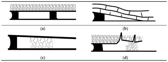 Surface structures mainly refer to railways, highways, dams, bridges, tunnels, and high-voltage lines. For general structures such as roads (as shown in Figure 10) and highways, the damage mechanism is equivalent to that of surface buildings. However, differently from general buildings, the influence and sensitivity of high-rise buildings, such as bridges and high-voltage lines, on surface movement and deformation are relatively special [40].