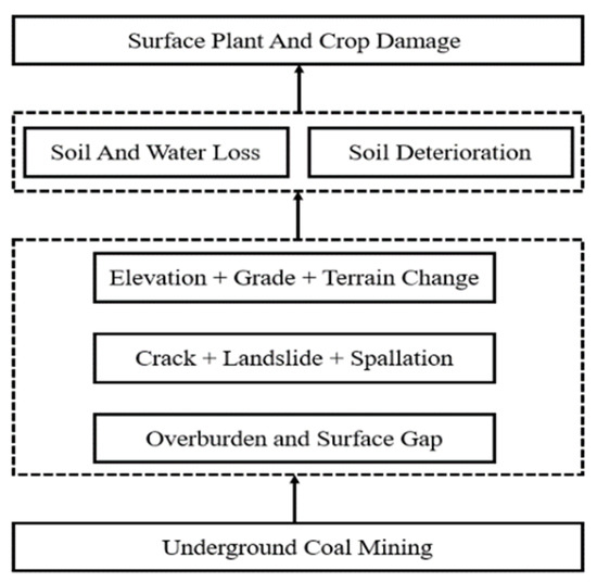Negative external impact refers to the kind of consumption or production of other adverse effects due to consumption or production [36]. Combined with the characteristics and forms of surface damage in underground mining, the negative external impact of surface damage is mainly manifested in the following aspects:
