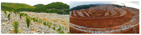 (1) Artificial restoration. In the past, the repair methods of mining areas were mostly artificial repair, as shown in Figure 17. In view of the mined-out area subsidence basin, the repair methods mainly include land leveling, combing row, deep excavation, and shallow cushion and filling technology. For fissures and steps, some damage is permanent and cannot be repaired. Filling repair is generally implemented for the repairable parts, which can effectively avoid accidents caused by the inflow of surface water into the mining area. Post-mining restoration is a remedial measure after the surface has been destroyed to a certain extent. At this point, the land damage and surface subsidence have reached their maximum, the reclamation rate is low, and the reclamation cycle is long. Based on the relationship between underground mining and surface damage remediation, the mining mode of mining with reclamation can be realized by using “pre-mining analysis, mining dynamic subsidence prediction, and simulation optimization of reclamation” technology, which can effectively improve the reclamation rate of land in mining areas [59].