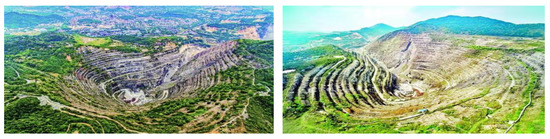 (3) Natural restoration is given priority, supplemented by artificial restoration, as well as artificial restoration and natural restoration combined. According to the determination of the degree of surface damage, natural restoration of a mining area is preferred. Although the relative recovery period is long, it is expected that artificial restoration can maintain the original local ecology, as much as possible, and the cost is low. For some mining areas that are locally in line with natural restoration, artificial restoration and natural restoration should be combined, to give full play to the advantages of natural restoration and the feasibility of artificial restoration.