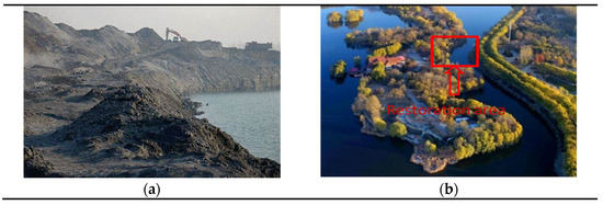 Comparison before and after restoration of Nanhu Central Ecological Park in Tangshan. (a) before restoration; (b) after restoration.