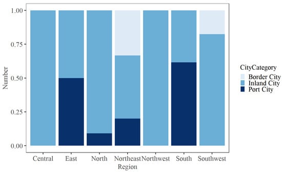 The air cargo data in this paper were obtained from the annual reports published on the official website of the Civil Aviation Administration of China. Macroeconomic data were obtained from the 2006–2019 China City Statistical Yearbook. For the selection of cities, 110 prefecture-level cities were selected as samples based on a combination of data availability, mainly based on air cargo and mail throughput data, and related macroeconomic data, from 2006 to 2019. The total GDP of the selected prefecture-level cities was accounted for according to the 2019 data, accounting for about 70% of the total GDP of the country. Finally, the selected cities were divided according to the geographical regions of China, the details of which are shown in Table 1.