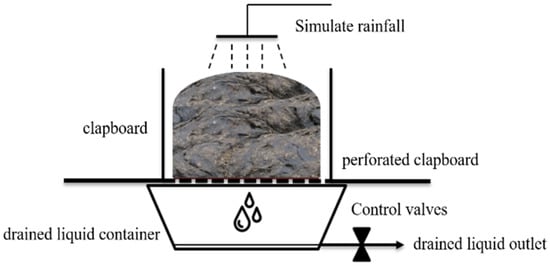 A total of 8 identical experimental setups were fabricated in this experiment, as shown in Figure 1. Dairy manure used in the experiment was taken from dairy farmers in Fengyi Town, Dali, China. Before composting, raw SEs, moisture content, and the solid physical and chemical properties of dairy manure were determined. After the dairy manure was mixed, it was divided into 8 parts for 8 experimental groups, and each part of 5 kg (wet weight) was placed into the experimental setup in form of a heap. Four experimental groups were added to 2.5 mL of organic fertilizer fermentation agent (main ingredients included Bacillus Natto, Bacillus, Actinomycetes, Yeast, Trichoderma, Azotobacteria, Lactic Acid Aacteria and their secretory extracellular enzymes, and the living bacteria counted more than 10 billion/mL) diluted with 200 mL of ultrapure water separately, while the 4 control groups received no additions. The 4 experimental groups and 4 control groups simulated different rain events, which were 5 mm/d (light rain), 10 mm/d (moderate rain), 30 mm/d (heavy rain), and 60 mm/d (torrential rain), respectively. The manure pile was manually stirred once a day to gain sufficient oxygen for the compost. The experiment lasted for 30 days and consisted of 10 cycles, of which 3 days was designed as a rainfall cycle. Rainfall flowed through the manure pile and into the collection container, where the leaching liquid was collected, and then the liquid volume and the SE concentration were determined after each simulated rainfall cycle. After the composting experiment ended, the residual SEs in the manure were determined.