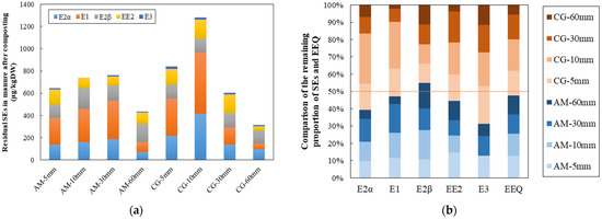 Residual SEs in manure after composting. (a) Residual SEs in manure after composting, (b) Comparison of the remaining proportion of SEs and EEQ.