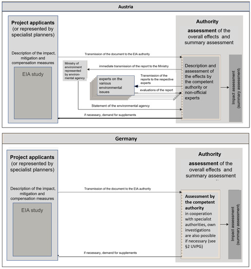 In contrast to Austria, the EIA in Germany is not a stand-alone process but is embedded in an overall administrative process with two-step decision making. The process must be coordinated and led by the competent authority, which is mainly responsible for the overall approval. The developer has to provide the environmental impact report and to cover all costs. In contrast to Austria, the EIA report is normally evaluated by the respective authorities involved. The summary of the expected impact, the required mitigation and compensation measures, including the evaluation reports and the public consultation, are provided by the competent authority. This final report should be considered in the overall decision-making process. However, a negative outcome of the EIA does not automatically lead to a negative final decision, because an overall negative result in the EIA has no substantive legal effect.