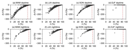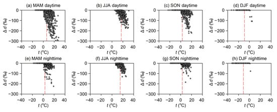 | Season | Δδ18O (‰) | Δδ2H (‰) | Δd (‰) | ||||||