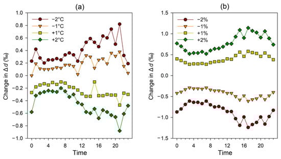 3.3. Sensitivity of Isotope Compositions to Temperature and Relative Humidity