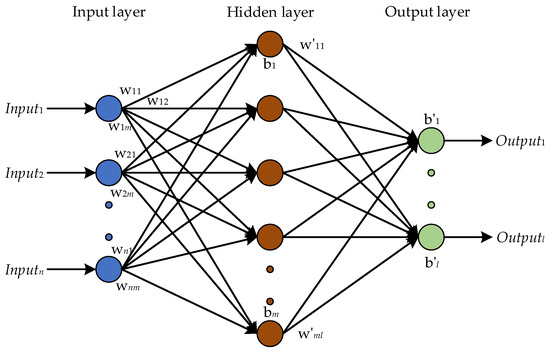 The ANN model is a nonlinear and adaptive information processing tool containing lots of interconnected analyzing units. It is developed on the basis of modern neuroscience investigation in order to process massive data by simulating the brain neural network. In the last few decades, research ANN has made great progress, which has overcome many complex practical problems in the research direction of intelligent robot, automatic control, forecast estimates, and many other academic disciplines, showing remarkable intelligence features. ANN has the ability of self-adaptation, self-organization, and self-learning; with the updated input information, the network can evolve and reconstruct for better data classification. In the ANN models, a neuron processing node can contain different objects, such as features, letters, or other meaningful abstract concepts. There are three main types of processing parts in the ANN model: input layer, output layer, and hidden layer, as displayed in Figure 3. Each part contains a large number of nodes connected to each other, and each node has a specific output function for the connected node in the previous part. Each connection between two nodes can be defined as the weight and bias, which can be used to process the output signals from the previous part and needs to be trained for a better classification effect.