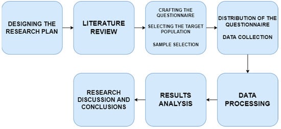 In order to achieve the aims of the paper, the authors carried out a scientific research methodology that encompassed several phases (Figure 2). Firstly, the authors designed the plan for the scientific research. Secondly, they searched for secondary data (e.g., reports, books, articles) from various domains (e.g., business administration, computer science, information technology) through desk research. In this regard, the information was identified and gathered from several electronic databases (e.g., Emerald Insight, Springer) and libraries (e.g., the Central University Library Carol I of Bucharest, the Romanian National Library). Then, the results were carefully systematized, analyzed, categorized, and synthesized.