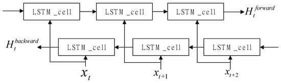 As we can see in Figure 5, the bidirectional LSTM network consists of forward and backward LSTMs, one for the forward passage of information and the other for backward passage [35]. The forward LSTM layer is applied to the input sequence, and the reverse form of the input sequence is fed into the backward LSTM layer [36]. Finally, the hidden states of the forward and backward layers are merged into the output. By applying the two unidirectional LSTMs, the shortcoming of the original LSTM that it only uses previous information if it is solved, and the prediction performance is improved [37]. In our work, the Bi-LSTM is adopted to capture the time dependence of traffic flow. Considering the periodicity of traffic information, we also stack multiple Bi-LSTM layers to extract periodic features from historical traffic data.