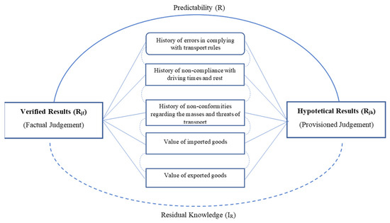 The analysis of probabilistic reasoning, based on the lens model, starts from the factual decision-making processes, from the verifiable results integrated in the information resulting from previous activities—the right side of the graph in Figure 1. The connection of the constructed reasonings with various other environmental cues allows the “connection of benchmarks” and the formulation of hypothetical conclusions or judgements—the left side of the graph in Figure 1. For example, a large number of fines imposed by the authorities should discourage future misconduct; in other words, these fines would be expected to boost voluntary compliance and streamline transport-specific processes.