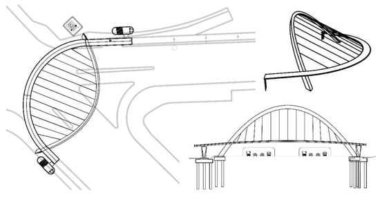 Yuanshan Bridge is a single-side suspension curvilinear basket arch bridge, located in Xiamen, China. The total length of the bridge is about 130 m, and the span layout is 10.49 m (southern side) + 91.92 m + 27.43 m (northern side). The side spans are built in the form of continuous beam structures, and the main span is an inclined single-side suspension arch bridge. The main arch of the bridge is 29 m high with an out-of-plane tilt of about 28°. The plane of the main span girder is on an arc with a radius of 37.16 m, and the total width of the bridge deck is 4.4 m. The bridge deck and the arch are connected by cables with a spacing of 5 m, and the inclined angles of hangers range from 23° to 28°. Layout of the Yuanshan Bridge Project is shown in Figure 1.