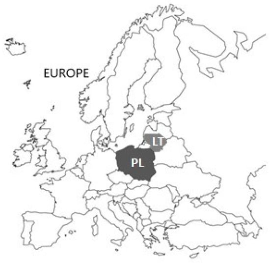 The study geographical outreach. The research concerned two neighboring countries of Central and Eastern Europe, i.e., Poland (PL) and Lithuania (LT) (Figure 1).