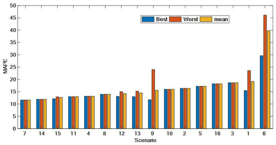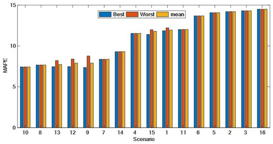 Results of MAPE for different scenarios—validation data—deep learning algorithm.